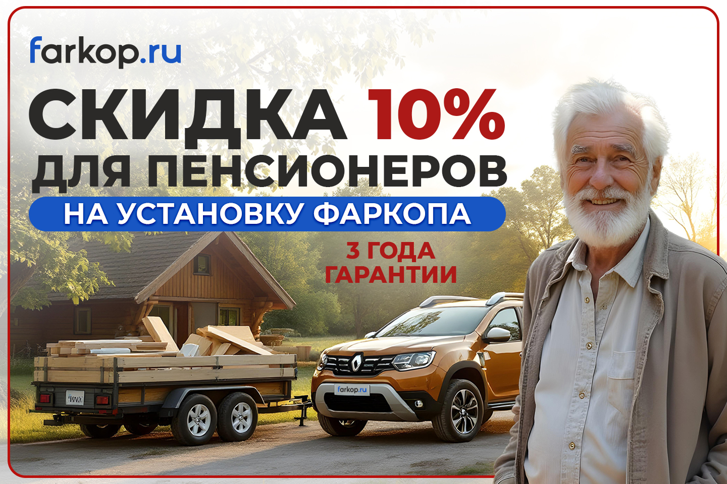 С 10 Октября мы запускаем акцию для всех наших покупателей на пенсии! И Дарим скидку 10% на установку фаркопа и электрики в любом установочном центре Farkop.ru!